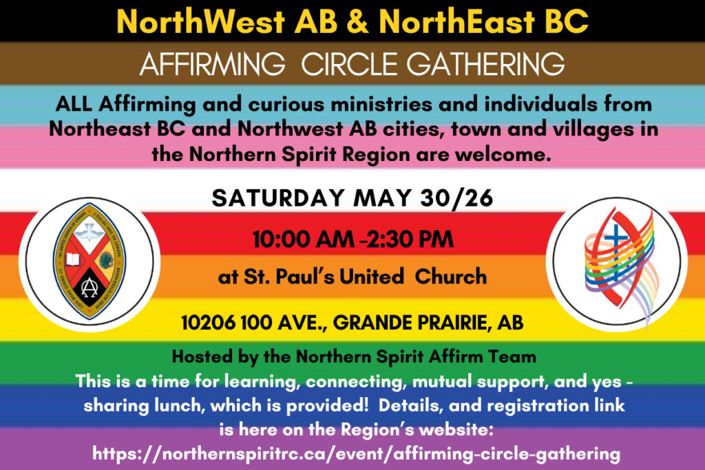 All welcome to this faith-based development and connection day for allied and LGBTQ2S+ folks. Our in person Affirming Leaders Day is cancelled, however, we are now hosting our conference online!